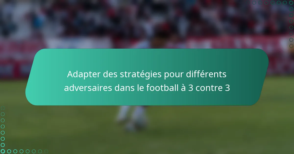 L’analyse des adversaires dans le football à 3 contre 3 se concentre sur la compréhension des forces, des faiblesses et des styles de jeu des équipes rivales. Cette connaissance permet aux équipes d’adapter efficacement leurs stratégies, augmentant ainsi leurs chances de succès sur le terrain.