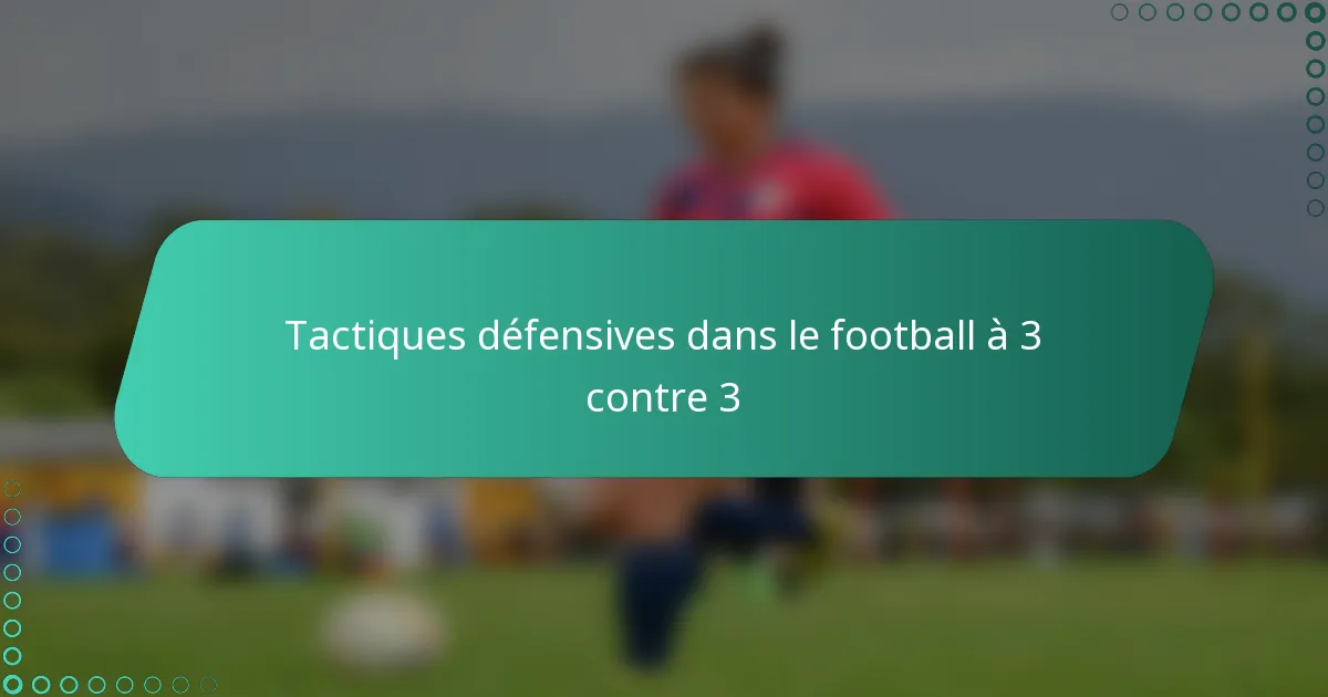 Les tactiques défensives dans le football à 3 se concentrent sur le maintien de la compacité, le marquage efficace et les transitions rapides. Les équipes utilisent une combinaison de défense de zone, de marquage individuel et de techniques de pressing pour contrôler le jeu et limiter les opportunités de marquer de l’adversaire.
