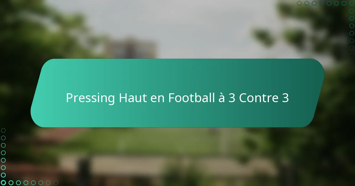 Le pressing haut dans le football à 3 contre 3 est une approche tactique dynamique où les équipes exercent une pression intense sur leurs adversaires pour récupérer rapidement la possession. En perturbant le jeu de construction de l’adversaire, les équipes peuvent créer des occasions de marquer tout en améliorant le travail d’équipe et la communication. Cette stratégie améliore non seulement la récupération du ballon, mais renforce également la condition physique globale et offre un avantage psychologique pendant les matchs.