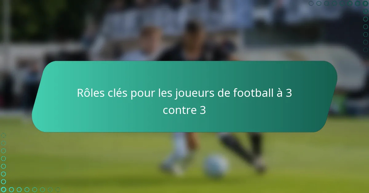 Chaque rôle dans un match de football à trois nécessite des compétences spécifiques qui contribuent à la performance globale de l’équipe. Comprendre ces compétences essentielles aide les joueurs à se concentrer sur leurs forces et à améliorer leur jeu.