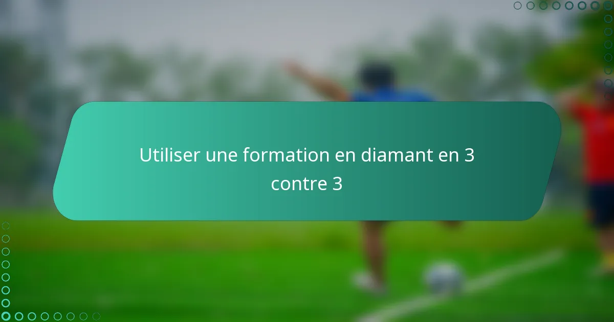 La formation en losange dans le football à trois est une configuration tactique qui positionne les joueurs en forme de losange, améliorant à la fois les stratégies offensives et défensives. Avec un joueur à l’arrière, deux au milieu de terrain et un avant, cette formation favorise un mouvement fluide et un soutien efficace sur le terrain, permettant aux équipes de conserver la possession et de s’adapter à divers scénarios de jeu.
